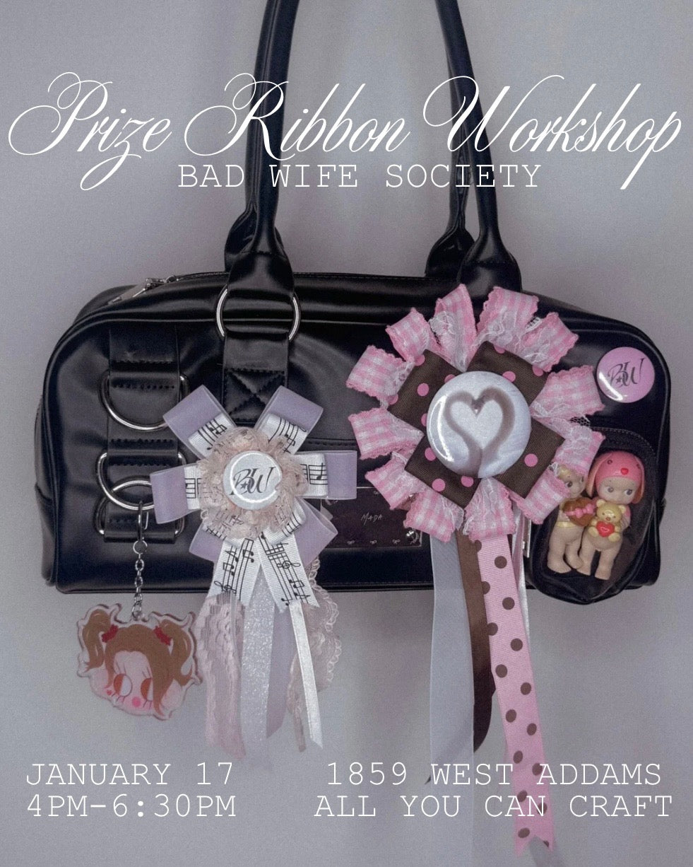 Join Bad Wife for an all-you-can-craft prize ribbon making workshop! All supplies are provided and included in ticket costs. Take home your own maximalist decor pieces made from our ribbon and button collection. Light refreshments provided. ˚⟡˖ ࣪
